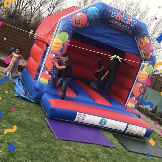 We proudly offer bouncy castle hire Let's Party Bouncy Castle (Blue & Red) in Manchester, Oldham, Saddleworth, Uppermill, Mossley, Ashton, Ashon-under-lyne, Coppice, Werneth, Bury, Middleton, Royton, Shaw, Crompton, Dukinfield, Hyde, Glodwick, Prestwich, Didsbury, Trafford. Our reliable team ensures prompt delivery, setup, and collection so you can focus on having fun!
