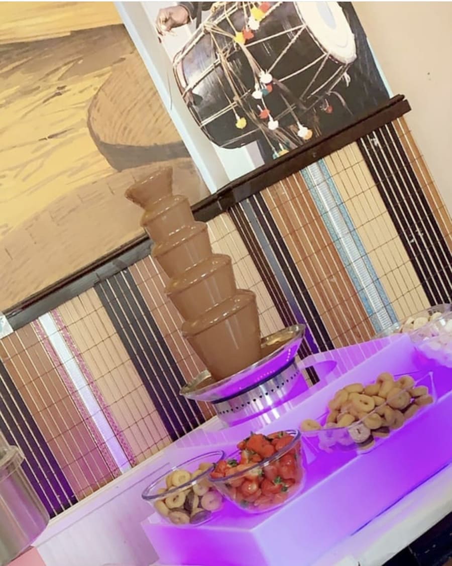- Chocolate Fountain Machine + LED Base ( Chocolate + Fruits etc not provided)