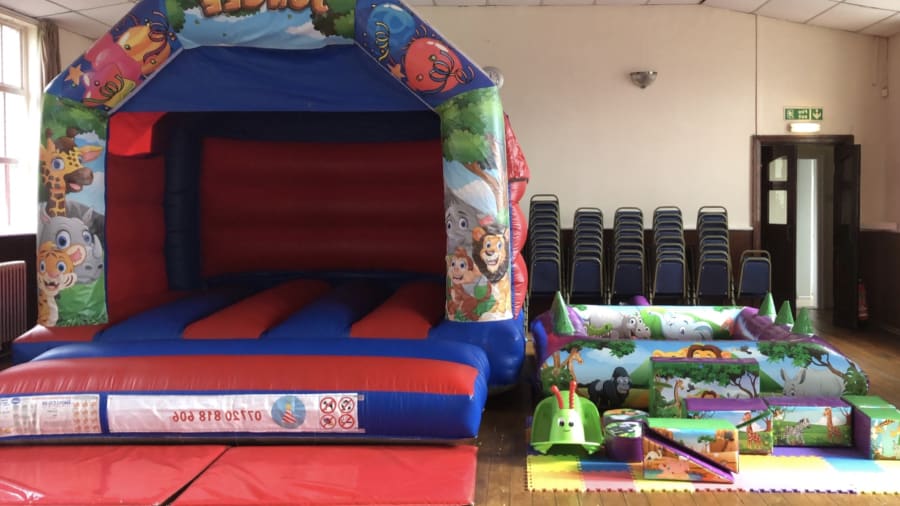 This Package comes with a 12 x 12 Jungle Theme Bouncy Castle, Jungle theme Ballpool with Airblower/balancer & 10 piece Jungle Softplay.